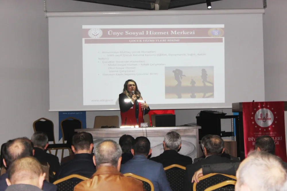 Toplantının açılışında Ünye Sosyal Hizmetler Müdürü Aybüke İnal Karaoğlan, “Çocuk Koruma Kanunu, Ailenin Korunması ve Koruyucu Aile Hizmetleri” konularında sunum yaptı.