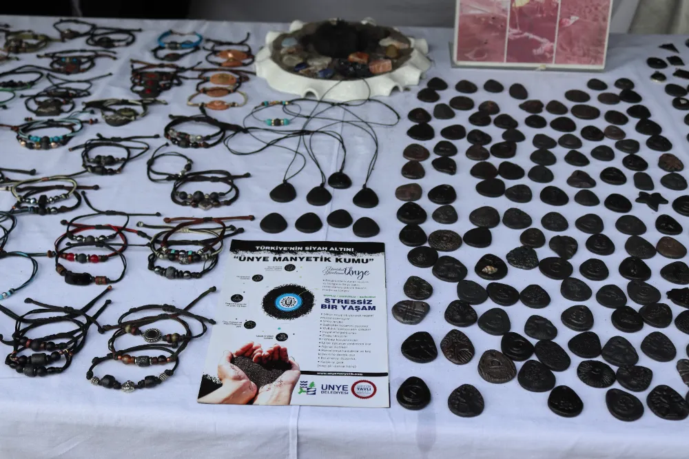 Festivalde en dikkat çeken ürünlerden biri de Ünye’nin dünyaca ünlü manyetik kumundan yapılan takılar.