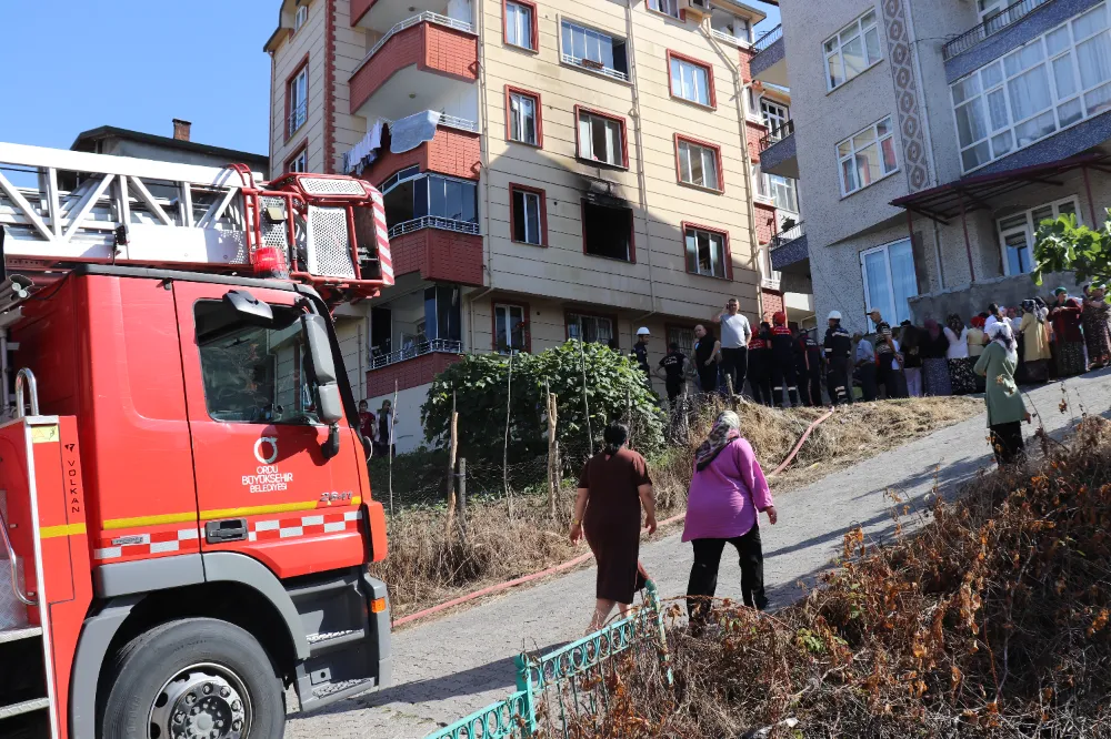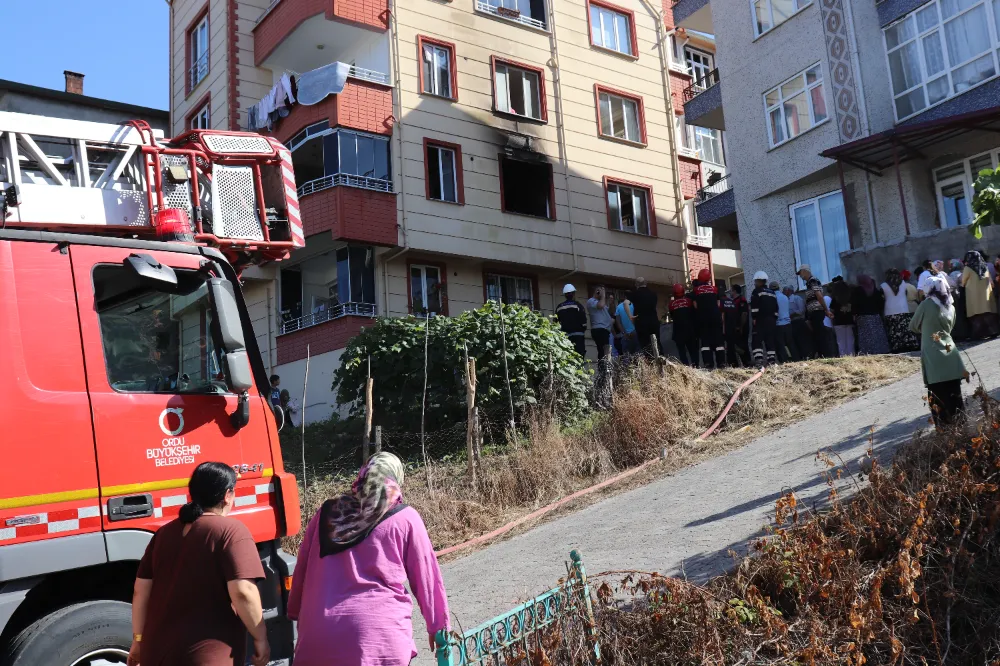 Ünye ilçesi Saraçlı Mahallesi Çoldur Sokak’ta bulunan 5 katlı bir binanın ikinci katında çıkan yangın, mahallede paniğe neden oldu. Hakan Açık’a ait dairede, eşi Gülay Açık ve çocukları Ömer (7) ile Yusuf (5) bulunduğu sırada henüz belirlenemeyen bir nedenle yangın çıktı.