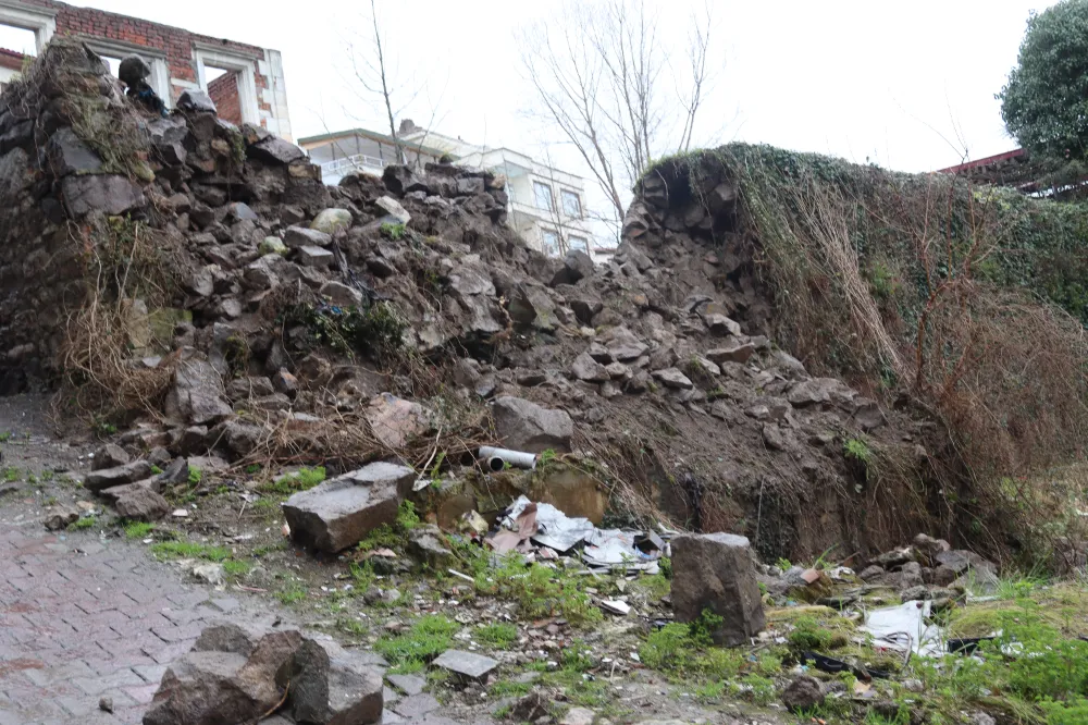 Ünye ilçesine bağlı Kaledere Mahallesi Çiftehamam Sokak’ta bulunan tarihi ev kalıntısının bulunduğu alandaki istinat duvarı çökme meydana geldi.