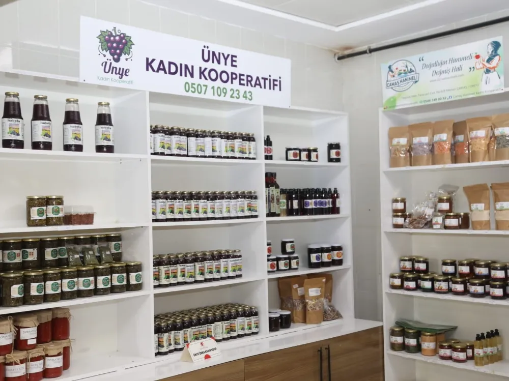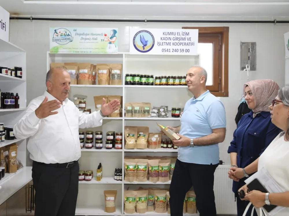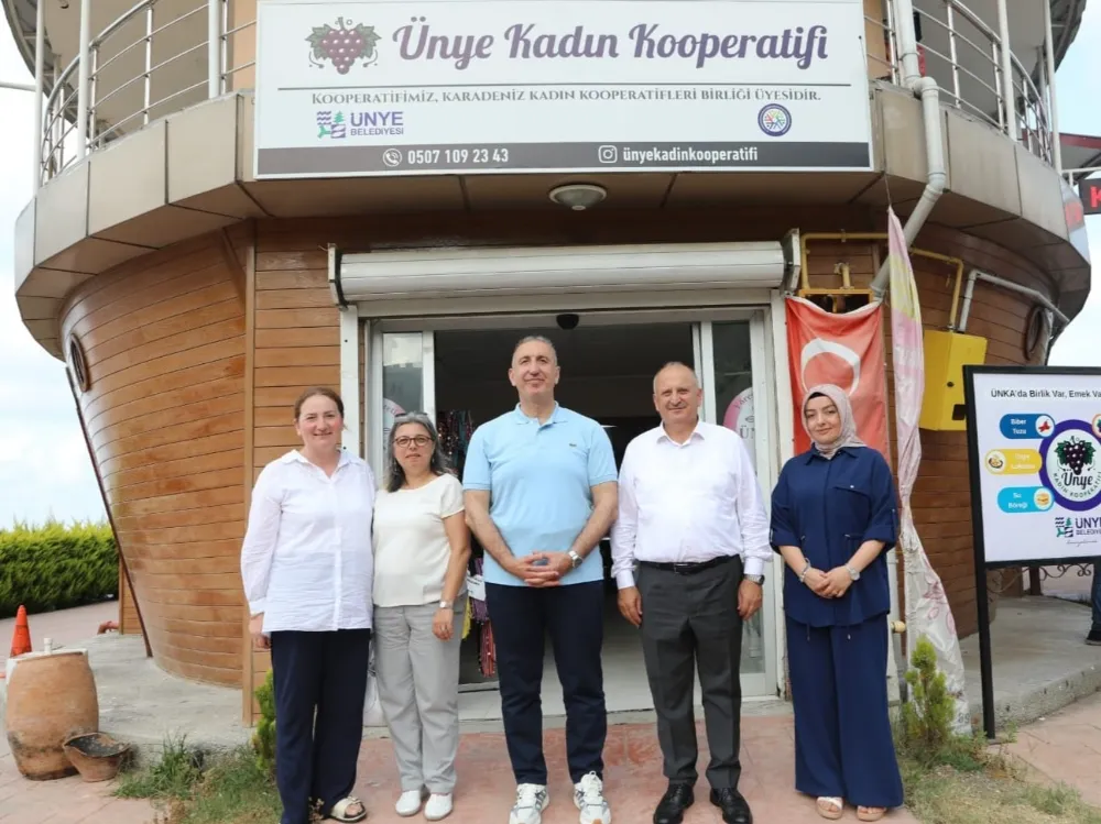 Ünye Belediye Başkanı Hüseyin Tavlı, Doğu Karadeniz Kalkınma Ajansı (DOKAP) Başkanı Hakan Gültekin ile birlikte “Yöresel Ürünler Kadın Eli ile Ekonomiye Dönüşüyor” projesi kapsamında kurulan ve faaliyetlerini Ünye Kadın Kooperatifi çatısı altında sürdüren üretim ve satış noktasını ziyaret etti.