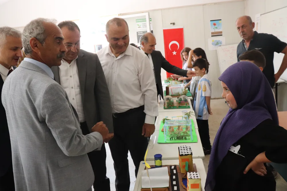 Ardından minik öğrencilerin hazırladığı maket sera sergisi protokol üyeleri tarafından ziyaret edildi. Öğrenciler, ziyaretçilere maket seralarında yaptığı çalışmaları anlattı.