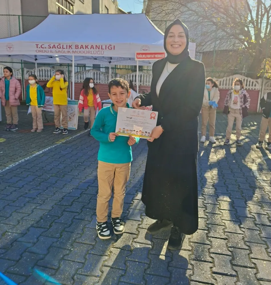 Ünye’de “Sağlıklı Çocuk, Sağlıklı Gelecek” projesi kapsamında Ünye Cumhuriyet İlkokulu’nda öğrencilerle bir araya gelerek sağlıklı yaşam, hijyen ve acil durum bilinci konularında eğitim verildi, öğrenciler “Sağlık Elçisi” ilan edildi.