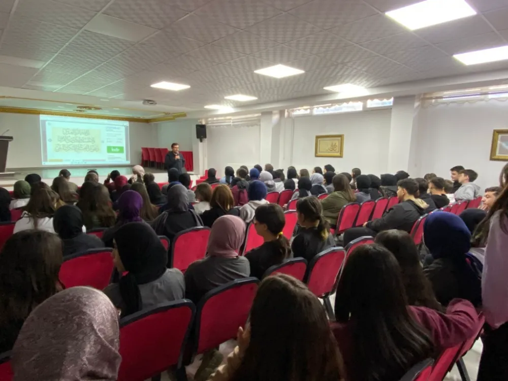 Okulun konferans salonunda gerçekleştirilen söyleşide Alperen, hat ve tezhip sanatının tarihsel gelişimi, kullanılan malzemeler ve bu sanatların taşıdığı estetik ve manevi değerler hakkında bilgi verdi.