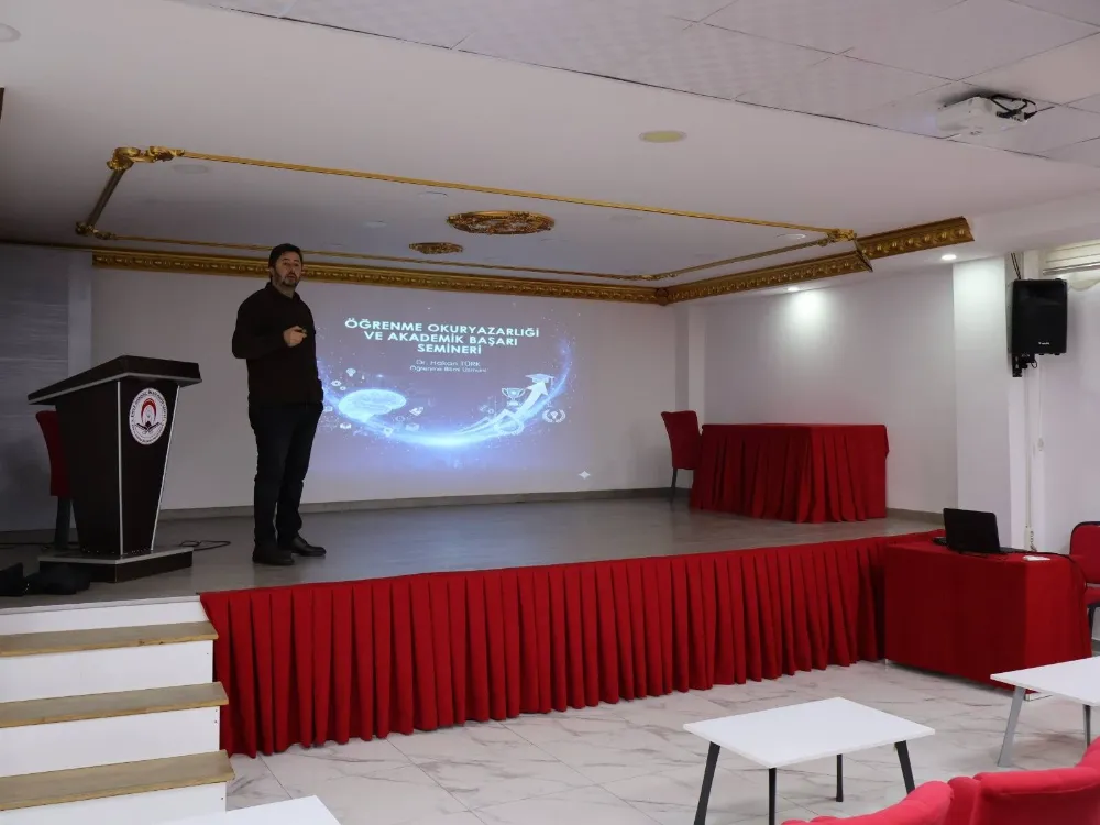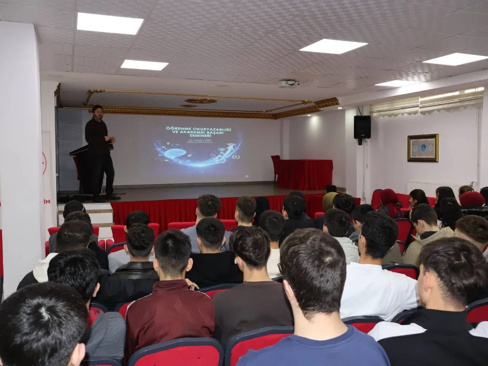 Öğrencilerin öğrenme motivasyonunu artırmak, öğrenme süreçlerini desteklemek ve akademik başarılarını yükseltmek amacıyla planlanan seminerde, öğrenme okuryazarlığının geliştirilmesi ile Ölçme, Seçme ve Yerleştirme Merkezi (ÖSYM) tarafından gerçekleştirilen Yükseköğretim Kurumları Sınavı’nda (YKS) başarıyı artırmaya yönelik strateji ve yöntemler ele alındı.