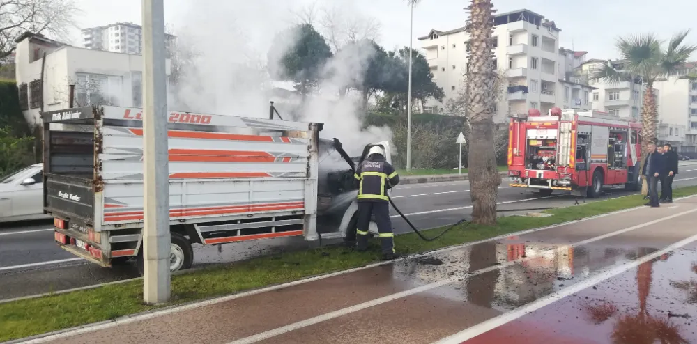 Edinilen bilgiye göre, Ünye Devlet Sahil yolu üzeri Fevzi Çakmak Mahallesi’nde Ünye istikametinde seyir halinde olan Berat Tulkar yönetimindeki 54 LH 638 plakalı kamyonet, henüz belirlenemeyen bir sebepten dolayı yanmaya başladı.