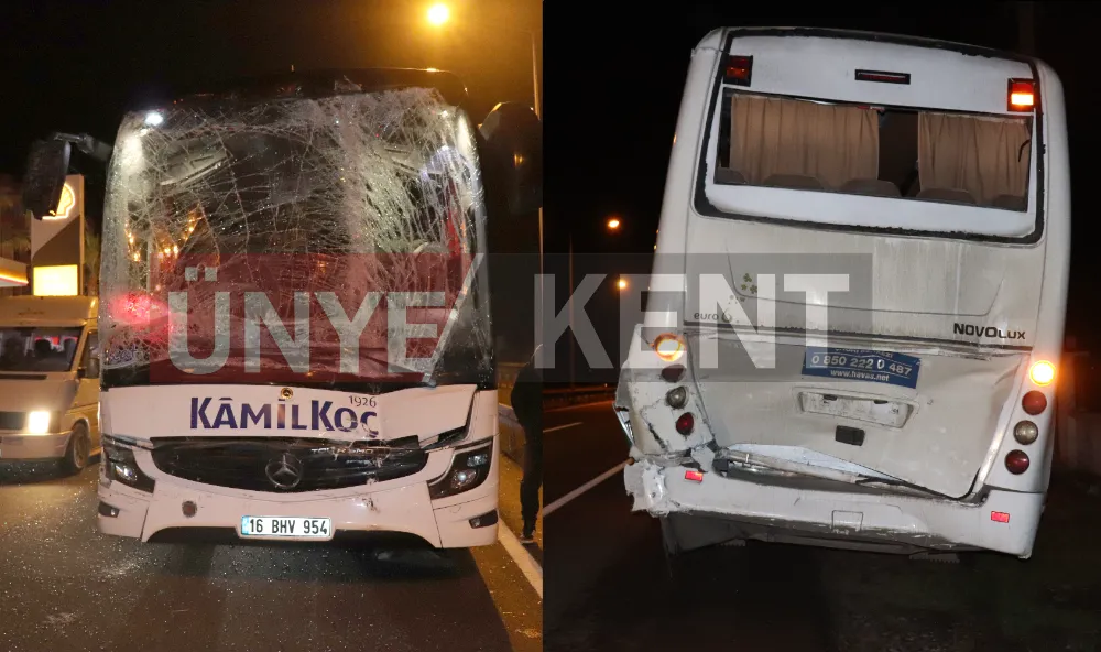 Edinilen bilgiye göre, Ünye – Fatsa Karayolu üzeri Yüceler Mahallesinde önüne çıkan ticari taksiye çarpmamak için direksiyon kırarak şerit değiştiren Ömer Faruk K. (45) yönetimindeki 34 FLC 803 plakalı Havaş’a ait yolcu otobüsüne, arkadan gelen ve Trabzon’dan İstanbul istikametine seyir halinde olan, Ömer Faruk A. (43) yönetimindeki 16 BHV 954 plakalı yolcu otobüsü çarptı.