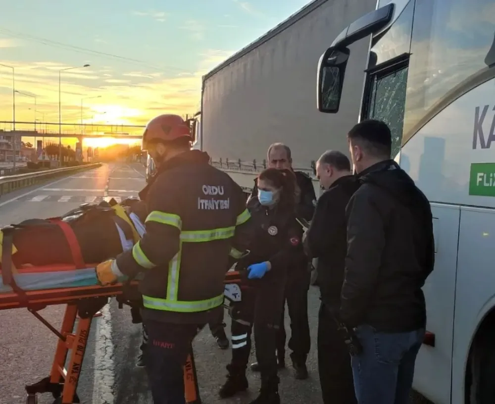 Alınan bilgiye göre, Samsun-Ordu karayolu Cevizdere Mahallesi mevkiinde, Muğla’nın Fethiye ilçesinden Trabzon’a seyir halinde olan Zekai Ş. idaresindeki 61 S 1216 plakalı yolcu otobüsü, Samsun’dan Ordu istikametine alçı taşıdığı öğrenilen Uysal B. yönetimindeki 70 ADU 598 plakalı tıra arkadan çarptı.