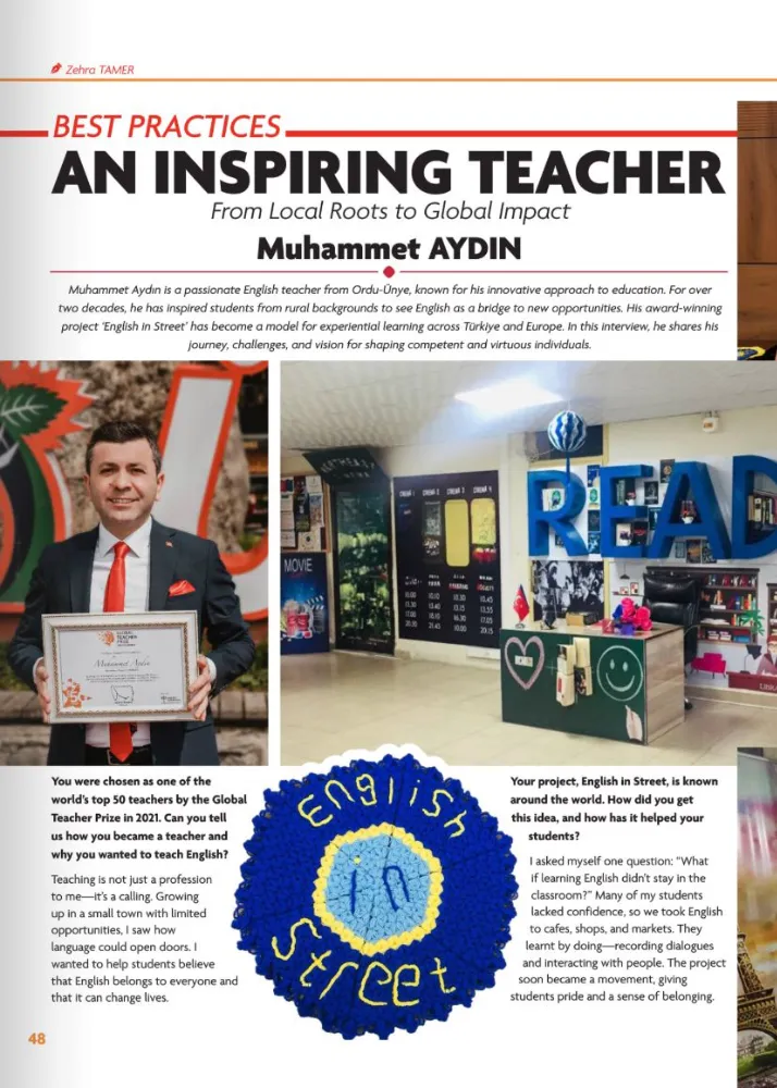 Aydın, şimdi de Millî Eğitim Bakanlığı’nın Cumhuriyet tarihinde ilk kez lise öğrencilerine yönelik yayımladığı İngilizce dergi Young and Wise’ın Ocak 2026 tarihli ilk özel sayısında “İlham Veren Öğretmen” seçkisiyle yer alarak başarılı kariyerine yenisini ekledi.