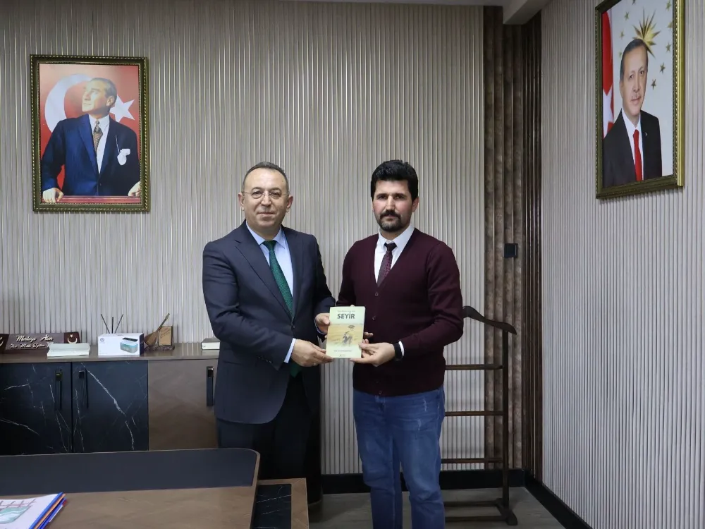 Müdürlük makamında gerçekleşen ziyarette eğitim, öğretmenlerin kültürel üretimi ve edebiyatın öğrenciler üzerindeki etkisi üzerine sohbet edildi.