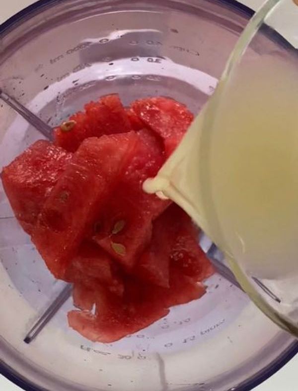 - Bardakların yarısına karpuz suyunu ekleyin.