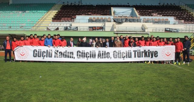 Bakanlik ve müdürlük çalisanlari ile kulüp yöneticileri ve futbolculariyla birlikte "Güçlü Kadin, Güçlü Aile, Güçlü Türkiye" yazili pankart açarak 8 Mart Kadinlar Günü'ne farkindalik olusturulmasi amaçlandi.