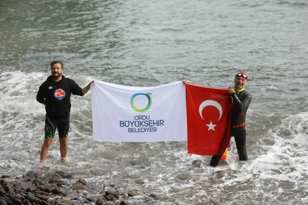 Antrenör eşliğinde Yason’dan sabah saatlerinde start alan Eroğlu, Karadeniz’in serin sularında kulaç attı. 7 km’lik zorlu parkuru sporcu Cem Eroğlu 2.5 saatte başarıyla tamamladı.
