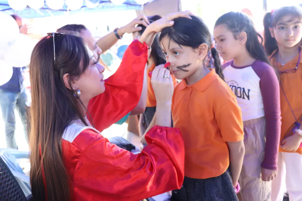 Etkinlikte ayrıca, öğrencilerin ve çocukların yüzleri boyanıp balon dağıtıldı.