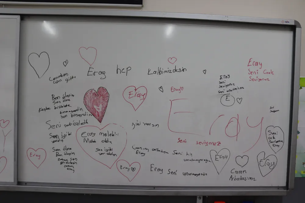 Sınıf arkadaşlarının yazılarıyla dolan tahta gün boyunca silinmedi. Sırasına bırakılan çiçekler ve mektuplar, küçük Eray’dan geriye kalan en hüzünlü hatıralar oldu.