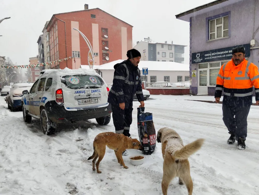 Akkuş Belediyesi, soğuk kış günlerinde dışarıda yaşamını sürdüren sahipsiz hayvanları unutmadı. Kar yağışının da başlamasıyla birlikte belediye ekipleri, ilçenin farklı noktalarında mama dağıtarak can dostlarının beslenmesini sağladı.