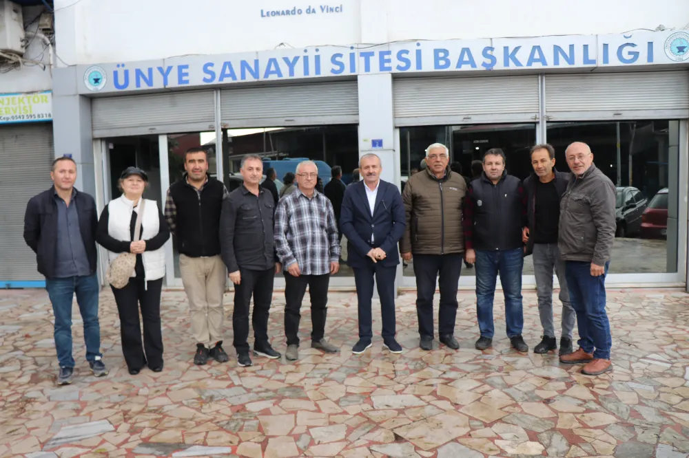 Ünye Küçük Sanayi sitemizde 315 esnaf ve sanatkarımız var. Ünye Küçük Sanayi Sitesi 1984 yılında temeli atılıp 1989 yılında faaliyete geçmişti. O günden bugüne kadar Ünye Küçük Sanayi Sitesine bir tane bile dükkan ilave edemedik. Sanayi sitemizde 315 dükkan var, 350 tane de sanayi sitesinde olması gerekirken muhtelif ev altlarında olan, sanayide olamayan esnaf ve sanatkar kardeşlerimiz var. Bundan sonra ki hedefimiz en az 800-1.000 dükkânlık bir küçük sanayi sitesi kazandırılması için Ünye Belediye Başkanı Hüseyin Tavlı ve Büyükşehir Belediye Başkanımız Dr. Mehmet Hilmi Güler ile birlikte çalışmamız devam ediyor. Ünye Belediyemiz yaptığı çalışmada Sanayi sitesinin yerini işaretledi. Bizde yeniden güven tazeledik. Bundan sonra ki süreçte Ünye’ye yeni bir küçük Sanayi sitesi kazandırmak için elimizden gelen mücadeleyi vereceğiz.”
