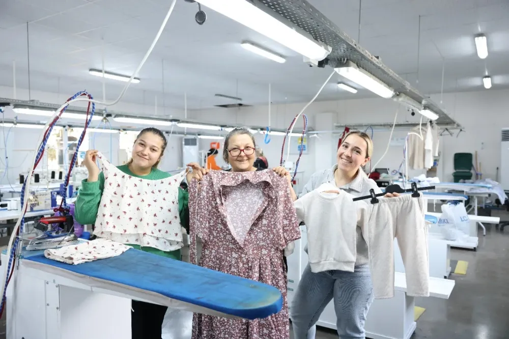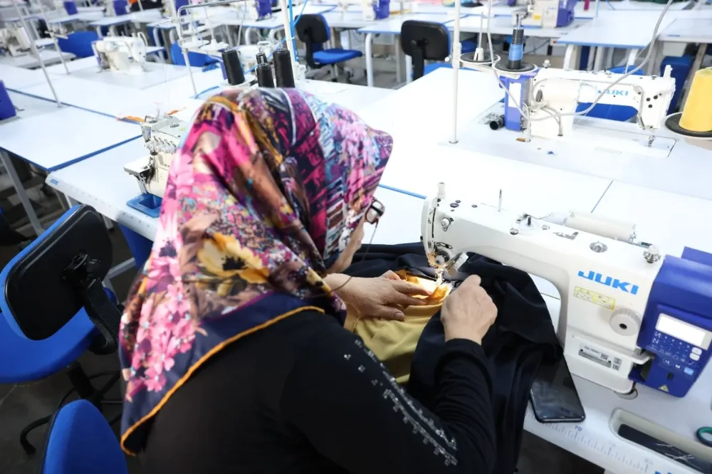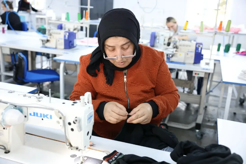 30 kursiyerin katıldığı eğitimlerde kadınlar, hem makine kullanmayı hem dikiş yapmayı ve dikiş tekniklerini öğreniyor. Kısa sürede verilen eğitimlerle pijama ve eşofman takımı gibi kıyafetleri dikmeye başlayan kursiyerler, evlerinde tamir gerektiren giysileri de onararak pratik yapıyorlar.