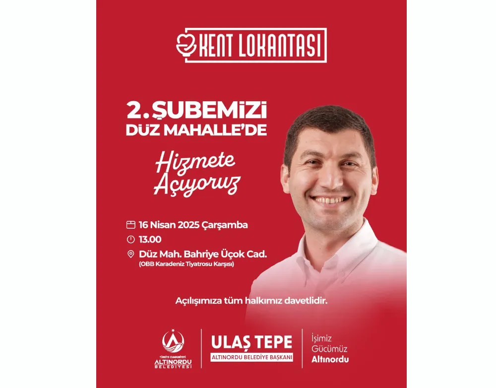 Şehrin ikinci kent lokantası CHP Genel Başkan Yardımcısı Gökan Zeybek’in katılımıyla Düz Mahalle Bahriye Üçok Sokak’ta Ordu Büyükşehir Belediyesi Karadeniz Tiyatrosu (OBBKT) karşısında 16 Nisan Çarşamba günü saat 13.00’te düzenlenecek törenle hizmete girecek.