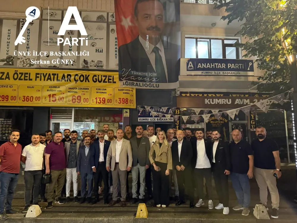 Anahtar Parti Ünye İlçe Başkanı Serkan Güney, toplantıya ilişkin yaptığı açıklamada, “Ünye, Akkuş ve Kumru Anahtar Parti ilçe teşkilatları Kumru’da bir araya geldi. Misafirperverlikleri ve samimi ev sahiplikleri için Başkanımız Mahmut Bayin’e ve kıymetli yönetimine teşekkür ederiz.” dedi.