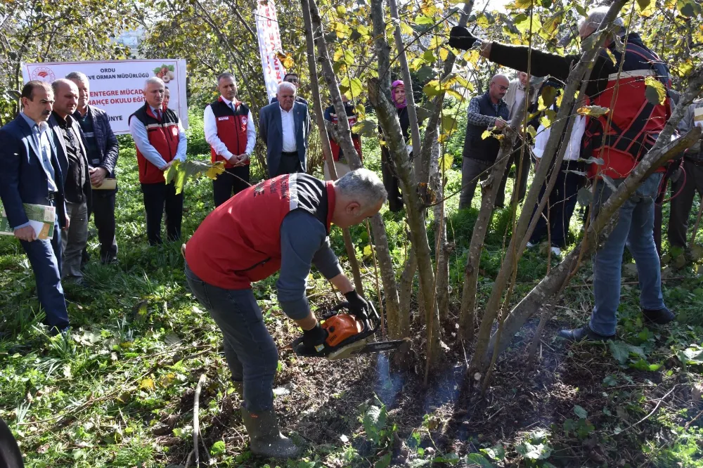 Ünye İlçe Tarım ve Orman Müdürlüğü teknik personeli tarafından verilen eğitimlerde üreticilere fındıkta doğru budama yöntemleri ve gübreleme uygulamaları örnekler üzerinden anlatıldı.