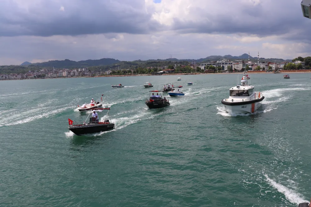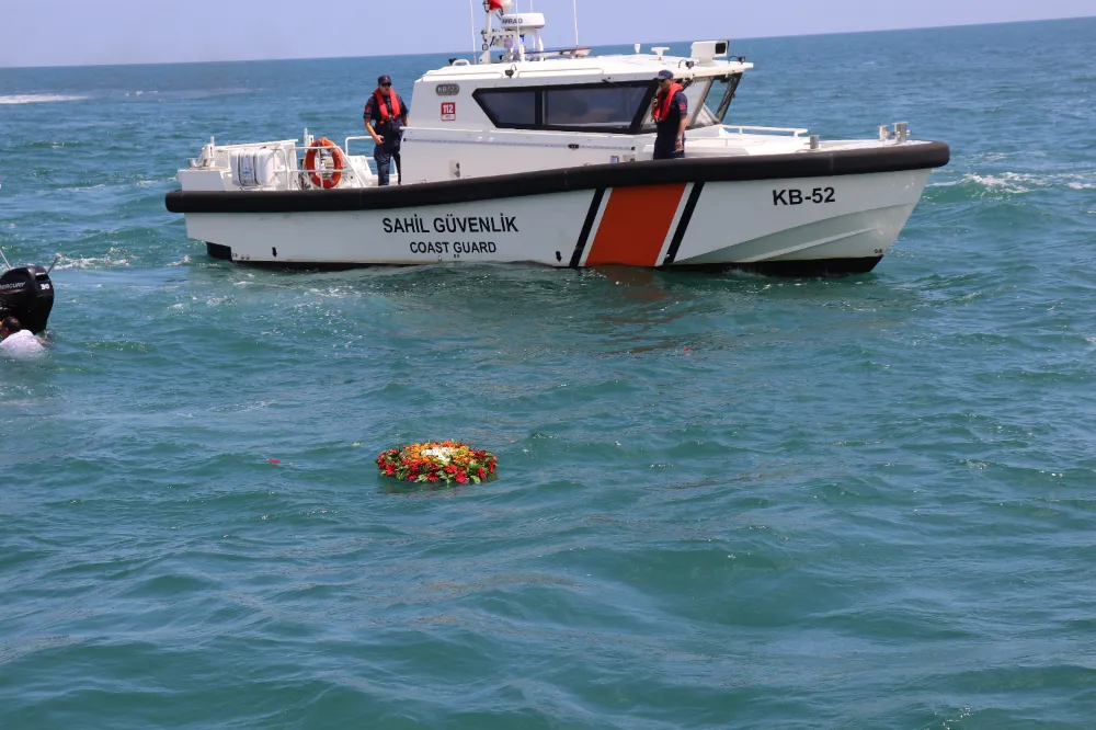 Ünye Kaymakamı Ayhan Işık, Belediye Başkanı Hüseyin Tavlı ve protokolün katılımıyla gerçekleşen programda deniz şehitleri anıldı, denize çelenk bırakıldı.