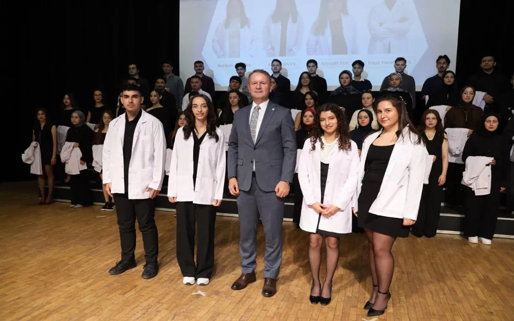 Konuşmaların ardından fakültenin birinci sınıf öğrencileri sahneye davet edilerek beyaz önlüklerini giydi. Böylece öğrenciler mesleğe ilk adımlarını sembolik olarak atmış oldu.