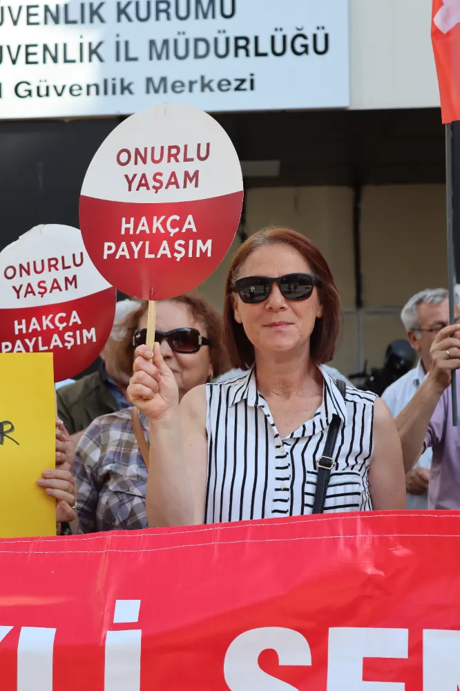 “Bunun anlamı açıktır: Emekliye kaynak yok diyenler, NATO’ya ayırdıkları kaynağı iki katına çıkarmaktan çekinmiyor. Bir kez daha ve yüksek sesle söylüyoruz: İktidarın tercihleri sınıfsaldır. İktidar, emeklilere açlığı işaret etmektedir. Bir kez daha haykırıyoruz: Kaynak saraydadır, kaynak makam araçlarındadır, kaynak sermayeye verilen teşviklerdedir, kaynak faizlerinizdir; NATO’ya ayırdıklarınızdır. Bizleri yaşarken öldüren bu iktidara sesleniyoruz: Emekliler olarak tüm hak ve taleplerimizi daha güçlü savunacağız! Örgütlü mücadelemizi büyütecek, sizin layık gördüklerinizle sınırlı bir yaşamı kabul etmeyeceğiz! İnsan onuruna yakışır bir emeklilik DİSK Emekli-Sen’de birleşmeye devam edeceğiz! Yaşasın DİSK! Yaşasın EMEKLİ-SEN! Yaşasın Emeklilikte İnsan Onuruna Yakışır Bir Yaşam Mücadelemiz!”