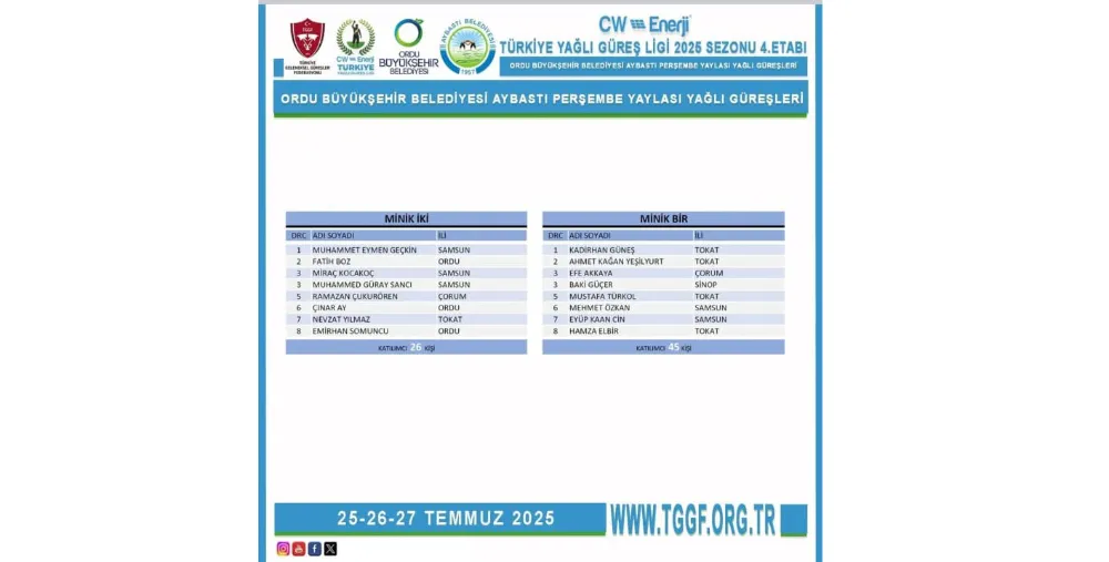 Ordu'nun Aybastı ilçesinde 25-27 Temmuz 2025 tarihleri arasında gerçekleştirilen 917. Geleneksel Perşembe Yaylası Mustafa Pehlivan Güreşleri ve CW Enerji Güreş Ligi 4. Etabına katılan Ünyeli güreşçi Fatih Boz, 2. Boy kategorisinde ikinci olarak gümüş madalya kazandı.
