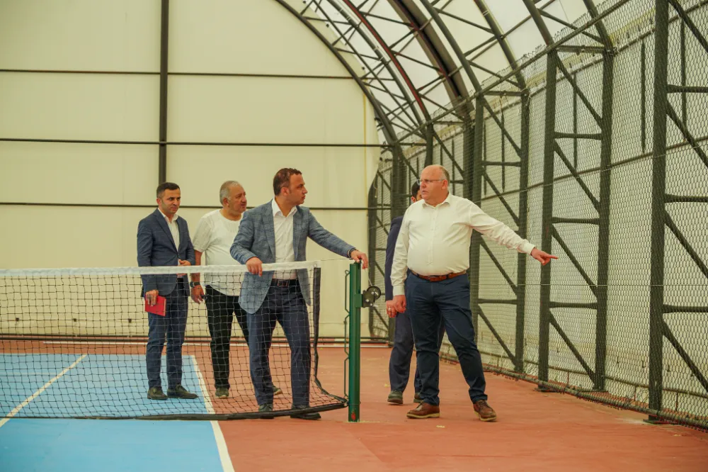 Fatsa Belediye Başkanı İbrahim Etem Kibar, Dolunay Mahallesi’nde gençlerin talebi üzerine yapımı tamamlanan 2 kapalı tenis kortu ve kapalı yüzme havuzunun kafeteryasında incelemelerde bulundu, projelerin son durumunu yerinde değerlendirdi.