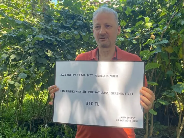 Ordu’da fındık üzerine yaptığı analizlerle tanınan Ziraat Mühendisi Haluk Şensoy, 2025 yılı için fındık üretim maliyetlerini açıkladı. Şensoy’un hesaplamalarına göre, artan girdi ve işçilik giderleri nedeniyle bu yıl 1 kilogram fındığın maliyeti 310 TL’ye ulaştı.