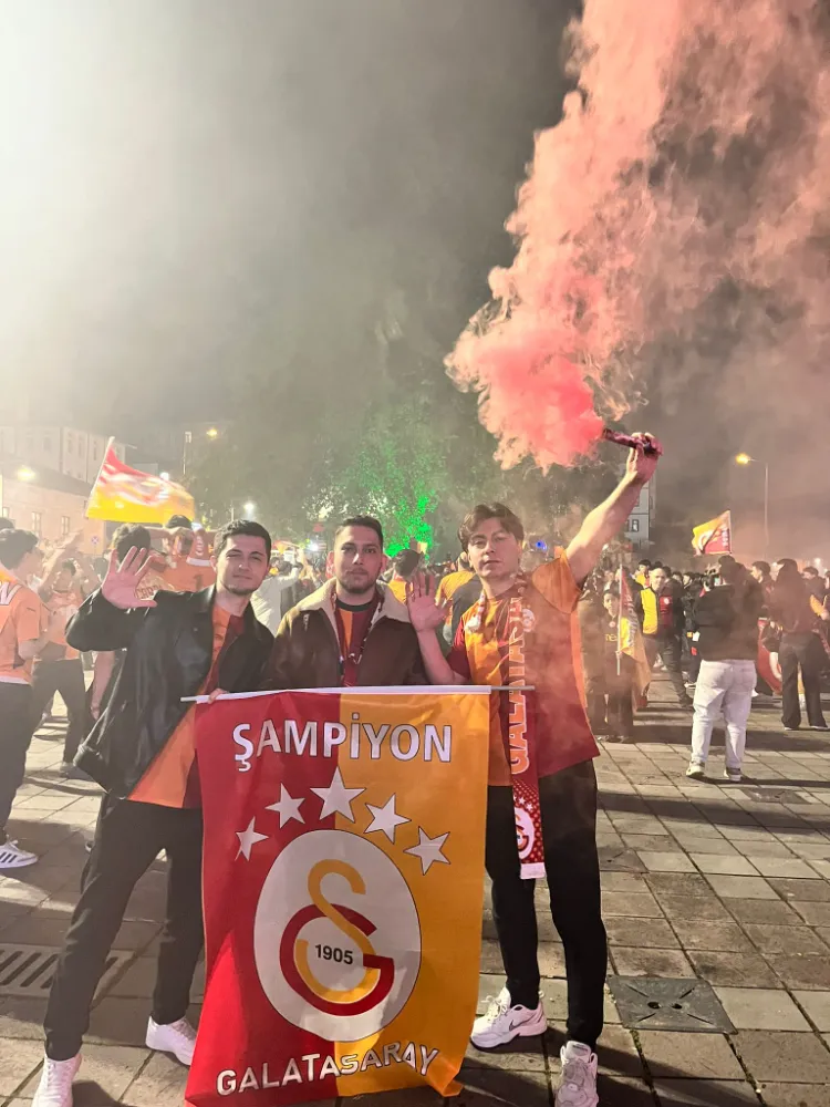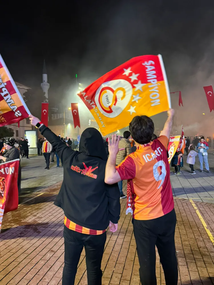 Kutlamalarda duygusal anlar da yaşandı. Galatasaray formalarıyla meydanı dolduran taraftarlar, şampiyonluk marşlarını hep bir ağızdan söyledi. Coşkulu kalabalık, Galatasaray’ın tarihi başarısını doyasıya kutlayarak takımlarına olan bağlılıklarını bir kez daha gösterdi.