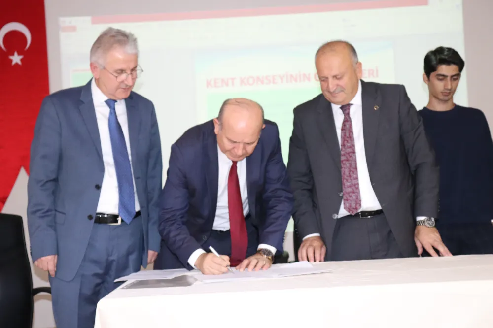 “Şehrimizde Kent Konseyi’nin kurulma sürecini geçmişten günümüze hatırlıyoruz. Belediye Başkanımızı böyle bir demokratik sivil toplumla buluşmaya aracılık eden Kent Konseyi’ne öncülük ettikleri için tebrik ediyorum. İş birliği protokolüne öncülük ettikleri için teşekkür ediyorum. Belediye Başkanımıza, Kent Konseyi Başkanımıza, öğretim üyelerimize, öğrencilerimize bizlere verdiği destek için teşekkür ediyorum.”