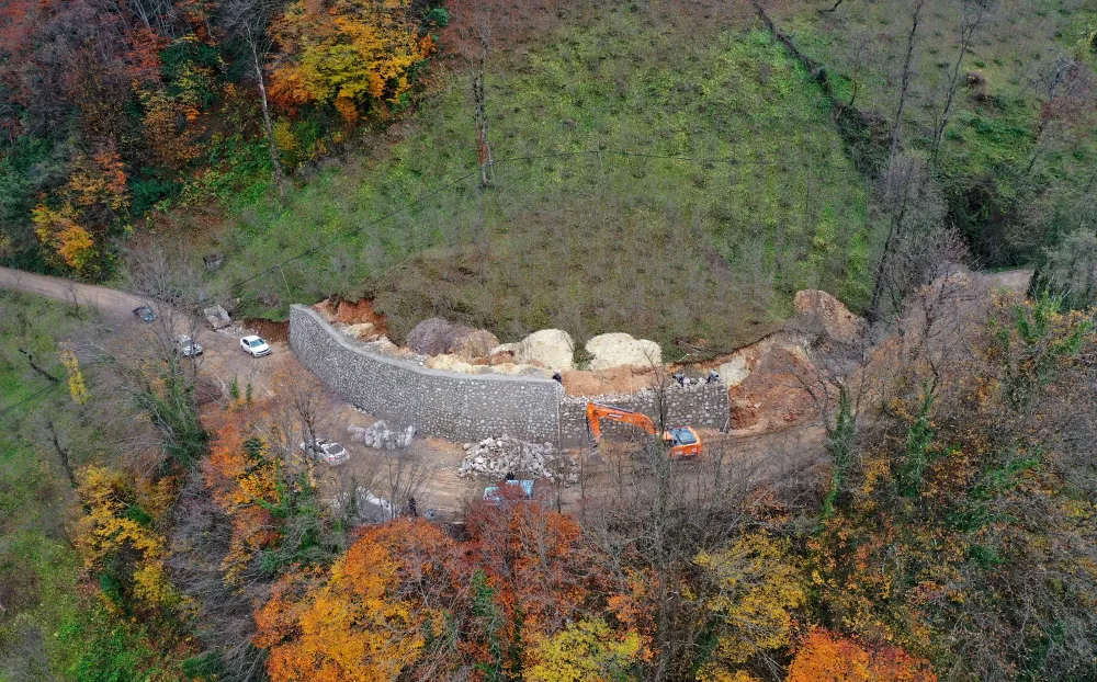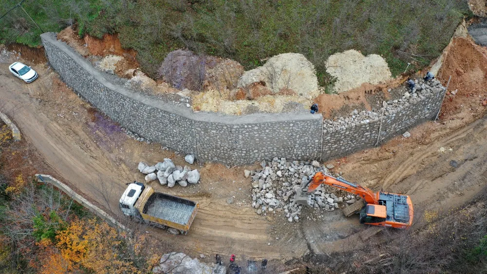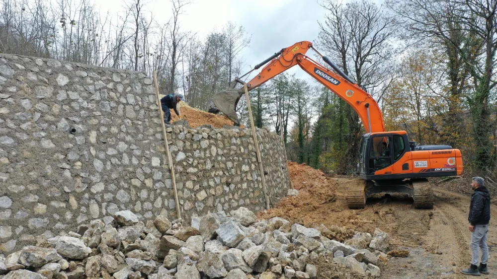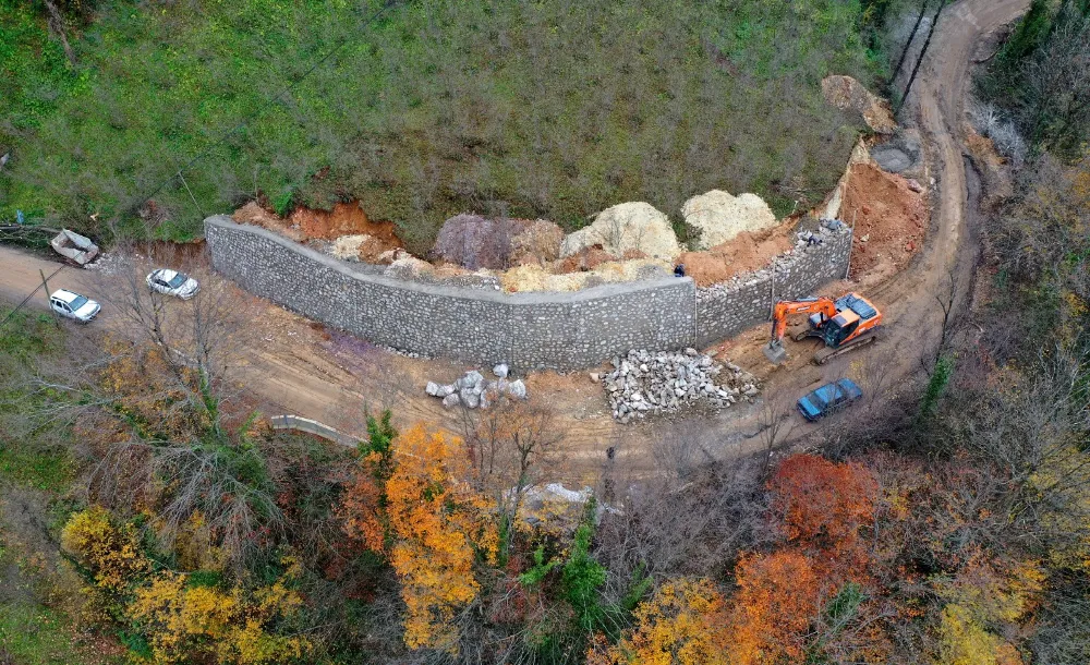 Özellikle yoğun yağış alan Ordu’da oluşabilecek toprak kaymalarında ulaşım hizmetlerinin aksamaması, yolların hasar alarak ömrünün kısalmasının önüne geçmek ve vatandaşların can güvenliğinin sağlanması amacıyla yol kenarlarına taş duvarlar inşa ediyor.