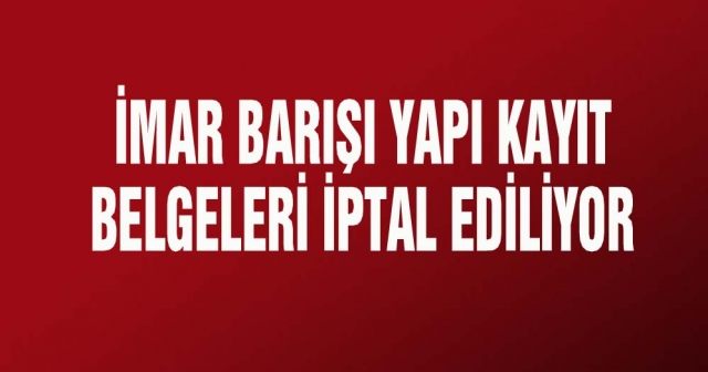 Imar Barisi kapsamina sokulan, ancak verilen Yapi kayit Belgelerinde usulsüzlük bulunan belgeler iptal ediliyor.