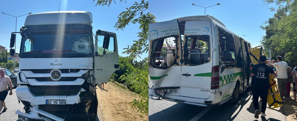 Alınan bilgiye göre, Ünye Devlet Sahil Yolu Sahilköy Mahallesi Çınarsuyu mevkiinde Ünye istikametine seyir halinde olan 52 VD 565 plakalı kamyon, sürücüsünün direksiyon hakimiyetini kaybetmesi onucu orta bariyeri aşıp karşı şeride geçerek 52 M 5010 plakalı yeşil hat dolmuşuyla çarpıştı.