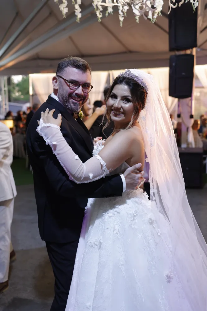Çiftin pasta kesimin ardından düğüne katılan davetliler müzik eşliğinde gönüllerince eğlendiler.