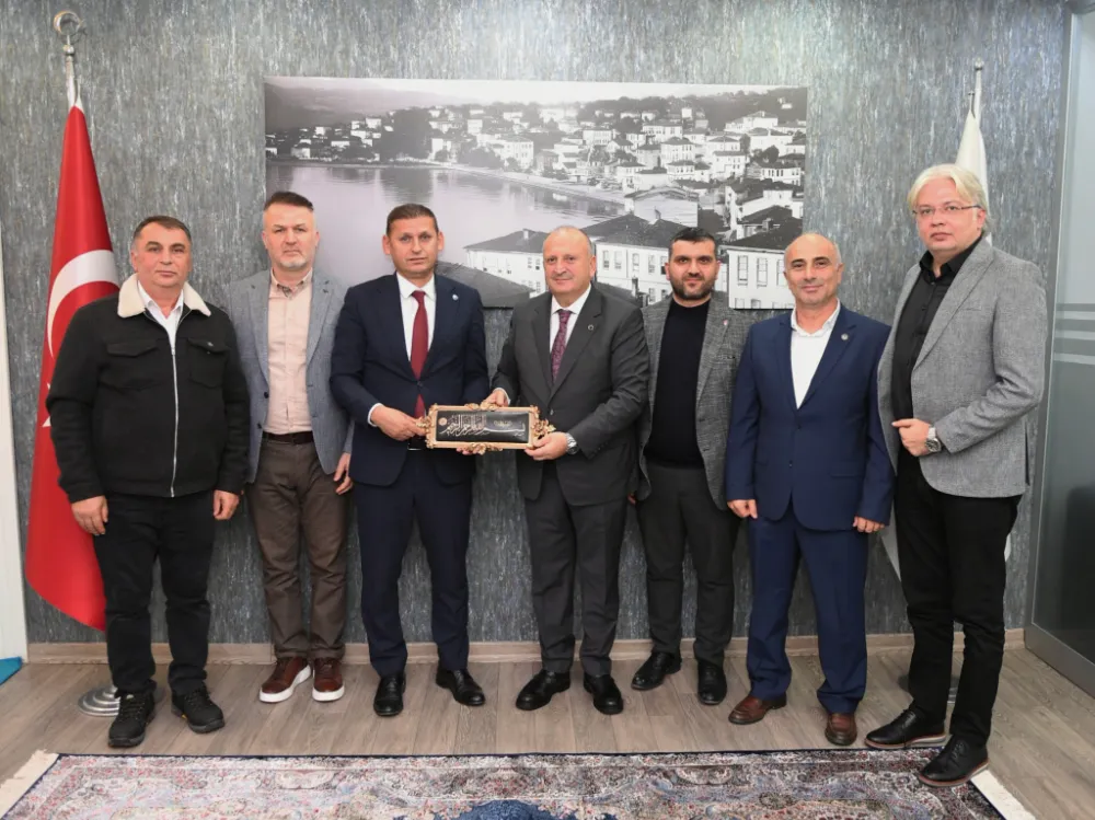 Ünye Belediye Başkanı Hüseyin Tavlı’yı Memur-Sen Ünye İlçe Başkanı Rahim Yiğit, Toçbir-Sen Başkanı Hacı Efil, Sağlık-Sen Ünye İlçe Başkanı Çetin Topallı, Tarım Toç-Bir-Sen Başkanı Mehmet Ateş ve Diyanet-Sen Ünye Temsilcisi Aydın Çamyar ziyaret etti.