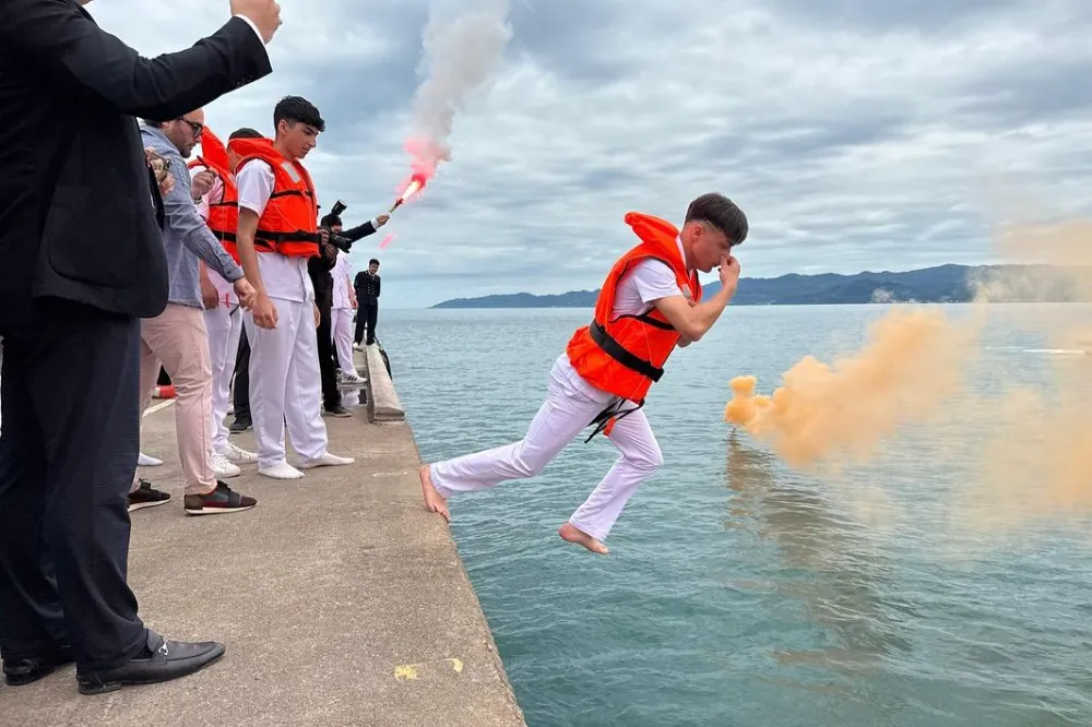Mezuniyet heyecanı, Karadeniz’in serin sularında düzenlenen geleneksel “diploma yüzme seremonisi” ile zirveye ulaştı.
