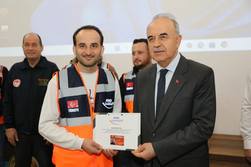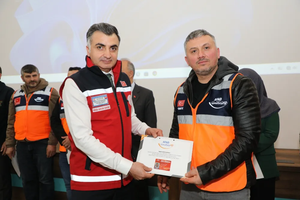 Afetlerde Acil Barınma Akreditasyonunu tamamlayan İl Millî Eğitim Müdürlüğü Arama Kurtarma Birimi (AKUB) ekibine Akreditasyon Arması, eğitimlerini tamamlayan Destek AFAD Gönüllülerine ise kimlik belgeleri düzenlenen törenle verildi.