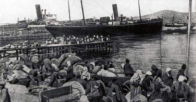 Aralik ortalarinda Resit pasa vapuru ile Ünye’ye gelen 1047 kisi, kar yagisi altinda vapurdan karaya çikarildilar.
