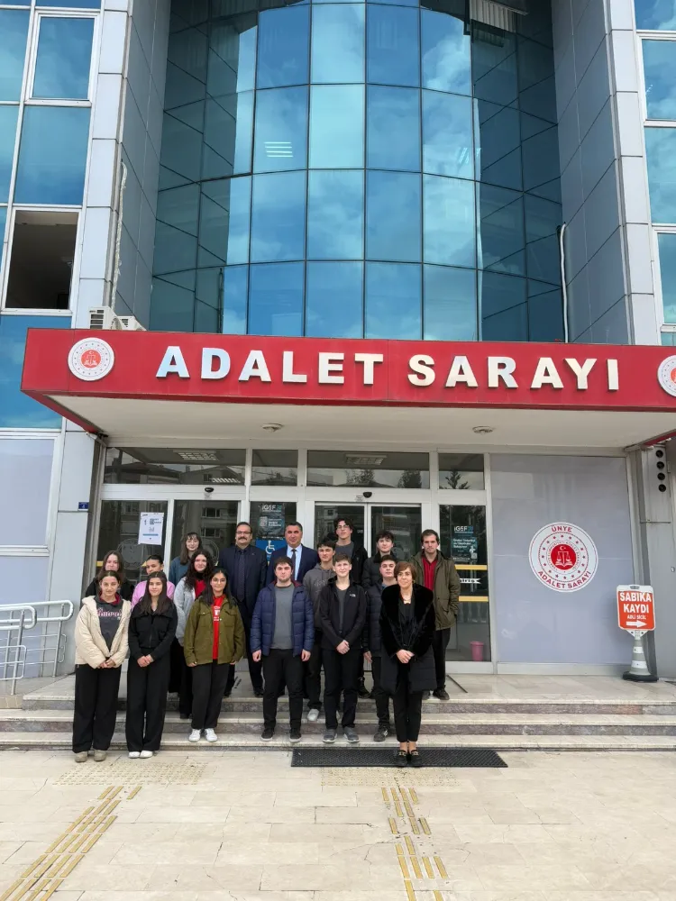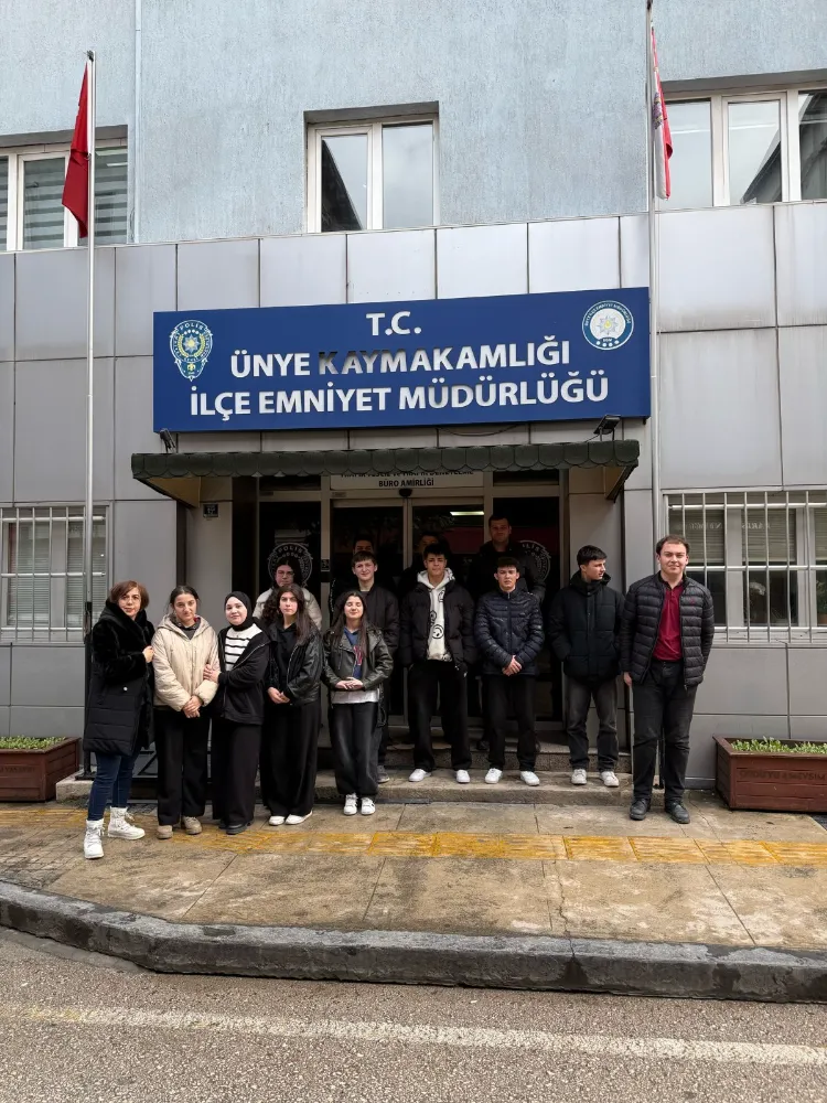 Proje kapsamında öğrenciler, Ünye İlçe Jandarma Komutanlığı, Ünye Emniyet Müdürlüğü, Hastane, Savcılık ve Adalet Sarayı’nı ziyaret ederek, bu alanlarda çalışan profesyonellerle bir araya geldi.