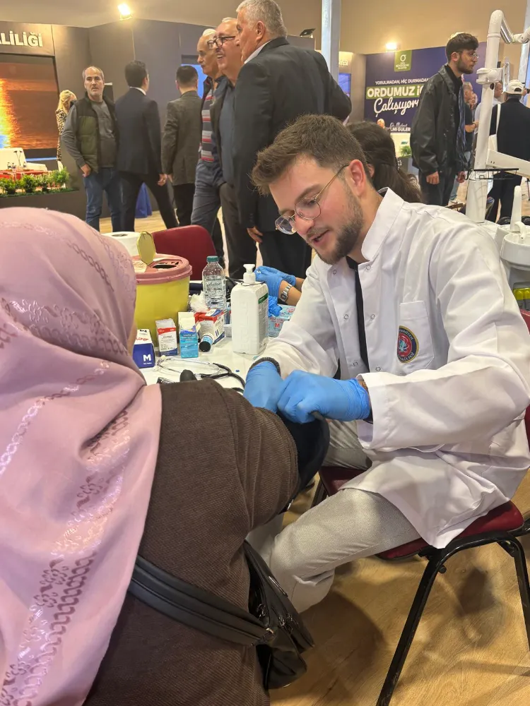 Ayrıca Tıp Fakültesi öğrencileri tarafından tansiyon ve şeker ölçümü yapılırken, Diş Hekimliği Fakültesi öğrencileri de ziyaretçilere diş kontrolü hizmeti sundu.