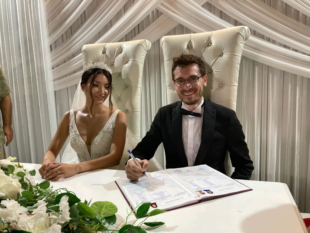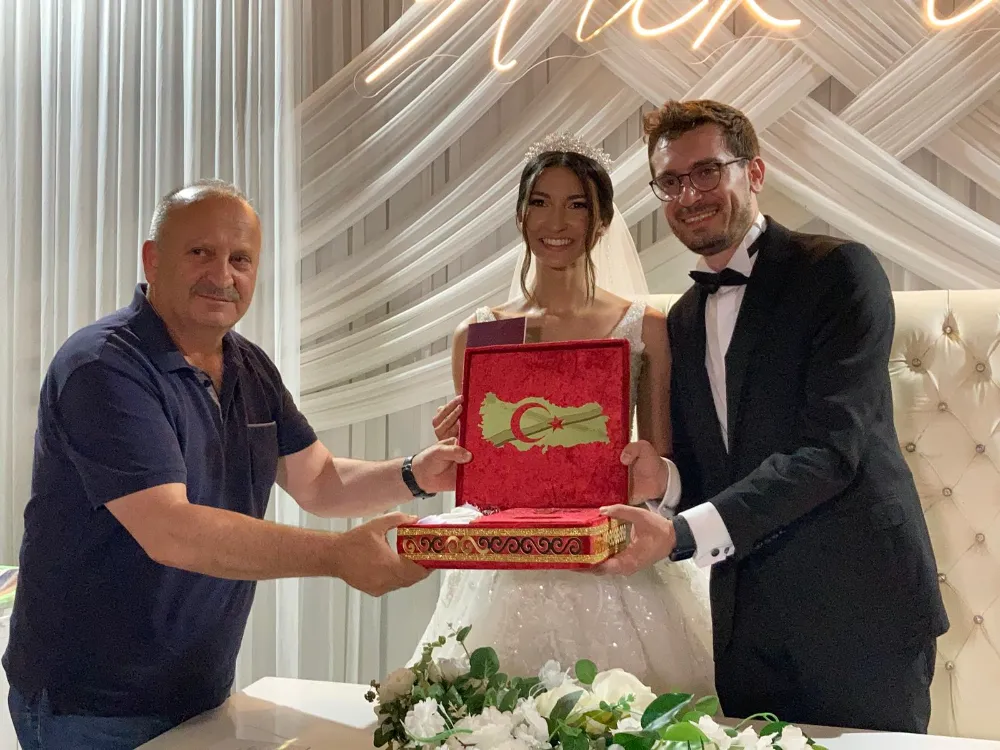 Çiftin nikahını kıyan Ünye Belediye Başkanı Hüseyin Tavlı, evlilik cüzdanını genç çifte takdim ederek bir ömür boyu mutluluk diledi.