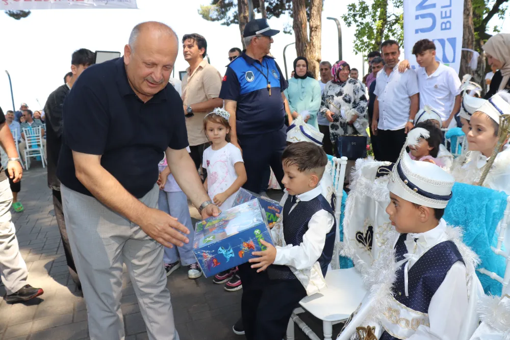 Ünye Belediyesi tarafından organize edilen hayırsever iş insanlarının destekleriyle gerçekleştirilen etkinlikte sünnet olan çocuklar için çeşitli etkinlikler ve sürprizler hazırlandı. Ailelerin ve vatandaşların yoğun ilgi gösterdiği organizasyon renkli görüntülere sahne oldu. Çocukların mutluluğu yüzlerine yansıdı.