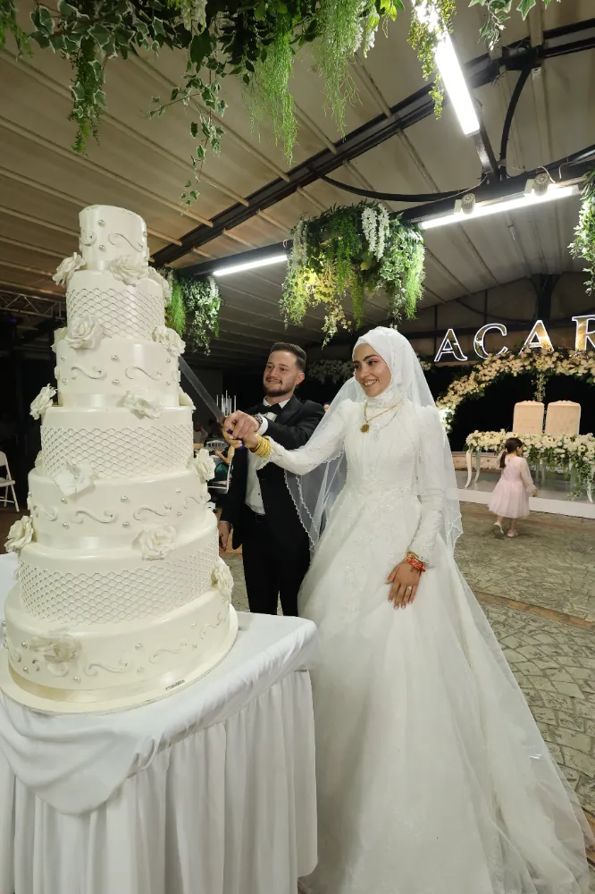 Çiftin pasta kesiminin ardından düğüne katılan misafirler müzik eşliğinde gece geç saatlere kadar eğlendi.
