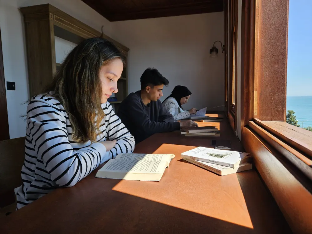 Gençlik Haftası kapsamında açılışı yapılan tarihi yapı, deniz manzarası eşliğinde kitap okuma ve ders çalışma imkânı sunuyor. Çay ve kahve ikramının ücretsiz olduğu mekânda sessiz ve huzurlu bir ortamda vakit geçirmek mümkün.