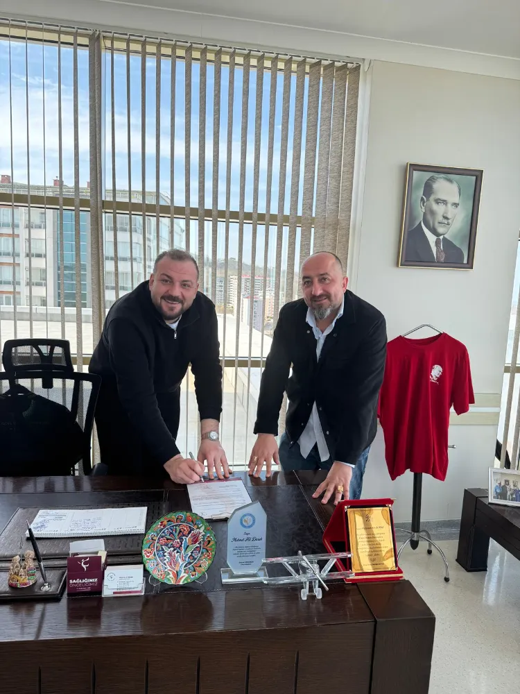 Özel Ünye Çakırtepe Hastanesi’nde düzenlenen protokol imza törenine, Hastane Yönetim Kurulu Başkanı Mehmet Ali Durak ile Ünye Sebze ve Meyve Komisyoncuları Derneği Başkanı Murat Dal katıldı.