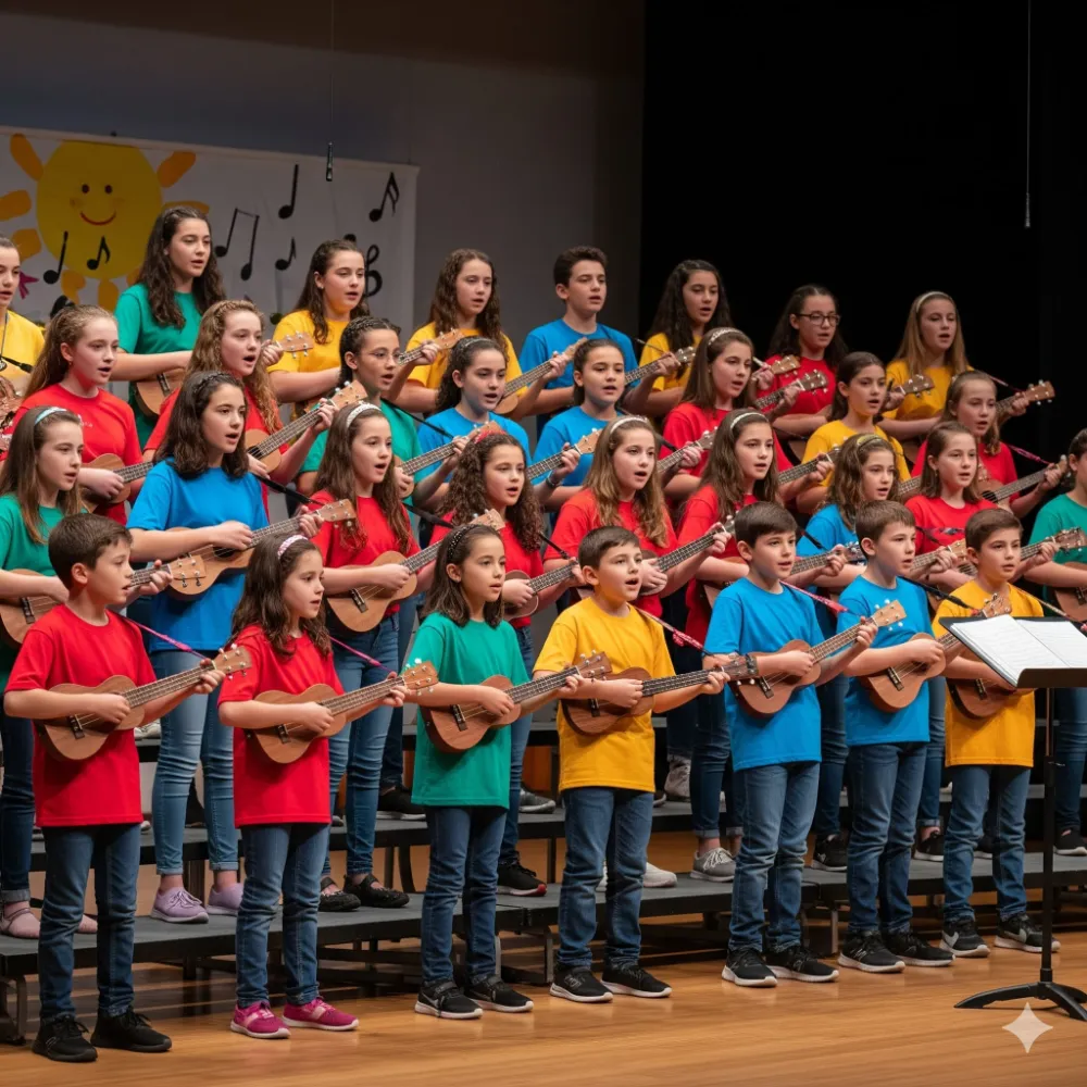 Koro üyeleri, hem ukulele çalacak, hem de şarkılarını aynı anda seslendirecek.