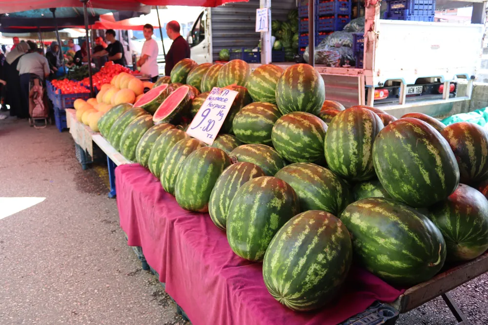 Tezgahlarda domates, salatalık, biber, patlıcan gibi bölgeye özgü yazlık ürünler yüzde elli civarında çıktı. Meyve tarafında ise Çarşamba’dan gelen şeftali, kavun ve karpuz satışta. Karpuzun bu yıl lezzeti müşterilerden tam not alırken, kavunlar henüz tam tatlı değil.
